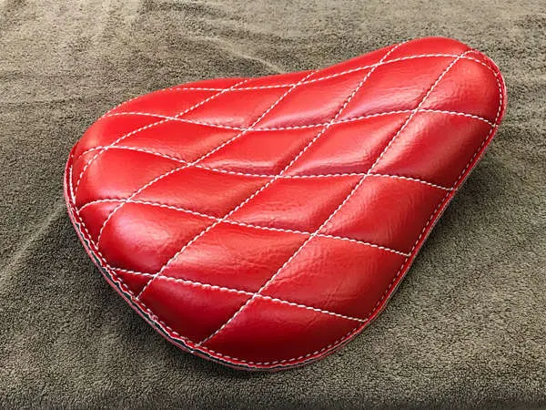 Refer to the 13? regular spring seat kit descriptions for specific details for your bike make and model. The bike shown is a Honda 750 Spirit Chain Drive. Your butt will love this seat! We use the best quality outdoor vinyl, which makes our seats the best in the business. The 1/8? 6061 aircraft aluminum pan is curved just right to keep you in place. These aren’t imported seats!!! We make them right here in Sandy, Utah. 2 1/2? ultimate grade foam is under the best quality vinyl. At 13? wide our large seat is very comfortable. It’s the ultimate for longer rides. Our mounting brackets are heavy steel or aluminum and powder coated gloss black (to match your frame). 3/8? diameter holes to mount your rear signal lights are located in the seat brackets. Every nut and bolt is included. No drilling or welding required. Please note, our seat kit will not work with the stock rear fender.