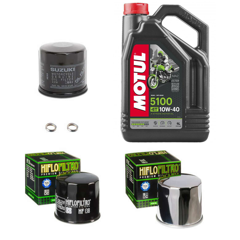 - Svart Suzuki original oljefilter: 16510-07J00, Svart HF138 eller Krom HF138C