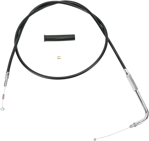 Black Vinyl Throttle/Idle CableCables feature polished-chrome fittings, black vinyl outer casings, tempered-steel inner conduit and an inner nylon liner for smooth operation and long life Length given is the length of the outer housing only, excluding the elbow Cables will also fit late-style Mikuni carbs