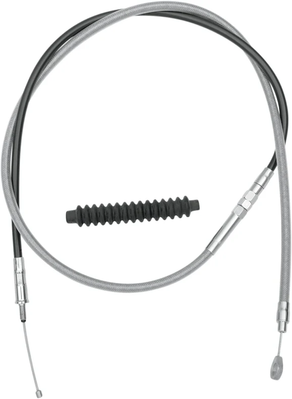 High-Efficiency Braided Stainless Steel Clutch CableLow effort, maximum efficiency cable design meets or exceeds all OEM specifications for fitment, construction and endurance requirements Cables feature chrome-plated fittings, stainless-steel braided outer casings, tempered-steel inner wire and a nylon inner sleeve for smooth operation Braiding is coated with a non-yellowing clear coating for abrasion resistance High-performance cables use the latest technology of longitudinally winding the outer housing lengthwise rather than spirally so cable bends in a more natural arc and eliminates spring and compression Late-style cables are measured with the adjuster completely collapsed. Adjuster measured from bottom of cable. Includes high-temperature black lower housing.